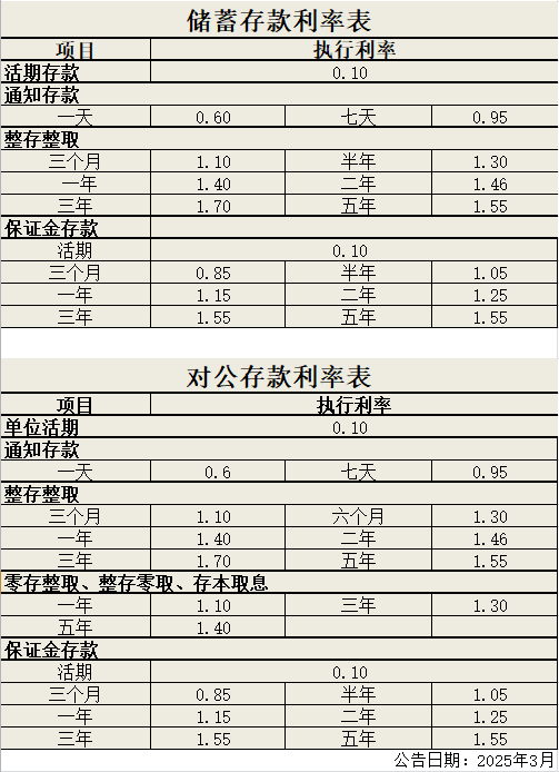 線下單位及個人人民幣存款利率