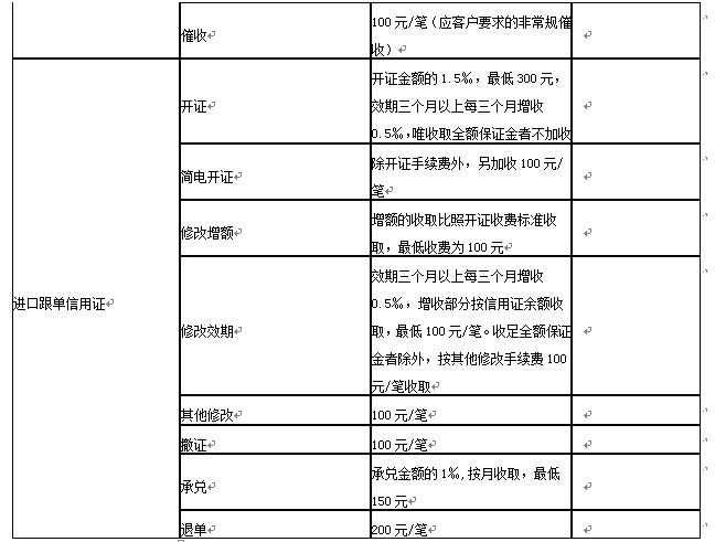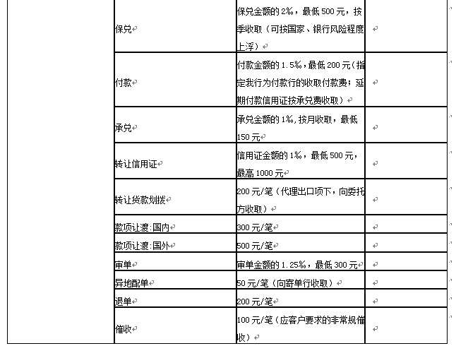 桐鄉(xiāng)農(nóng)商銀行國際業(yè)務(wù)部服務(wù)收費(fèi)業(yè)務(wù)價(jià)格表